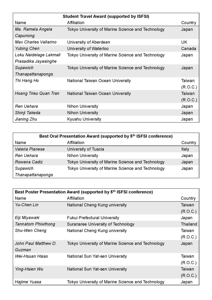 Congratulations to all recipients of the 5th ISFSI Awards!